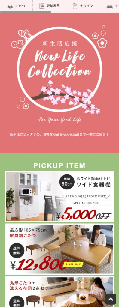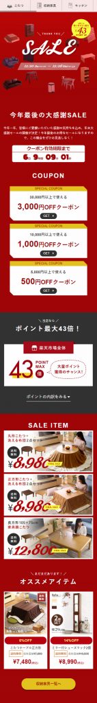 - ポイントの詳細説明やクーポン、カウンター、目玉商品など情報を読みやすくカテゴライズしながら、購入の動機となる情報量を増やし、自然と読み進めてしまうような流れをつくりました。