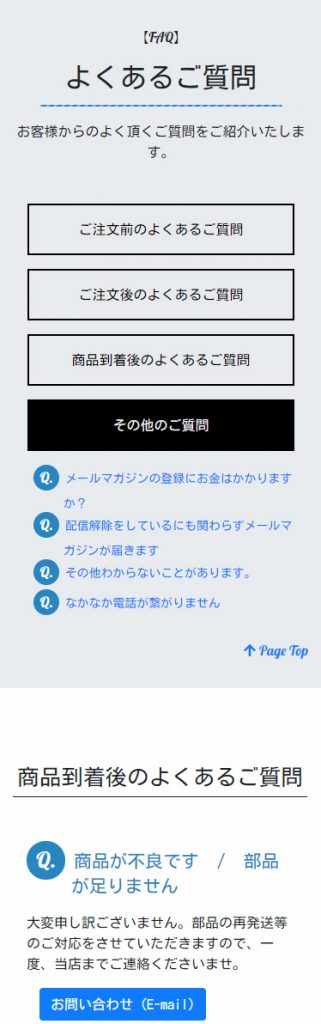 - 各まとまりで質問一覧へ飛べるように「PageTop」を設置