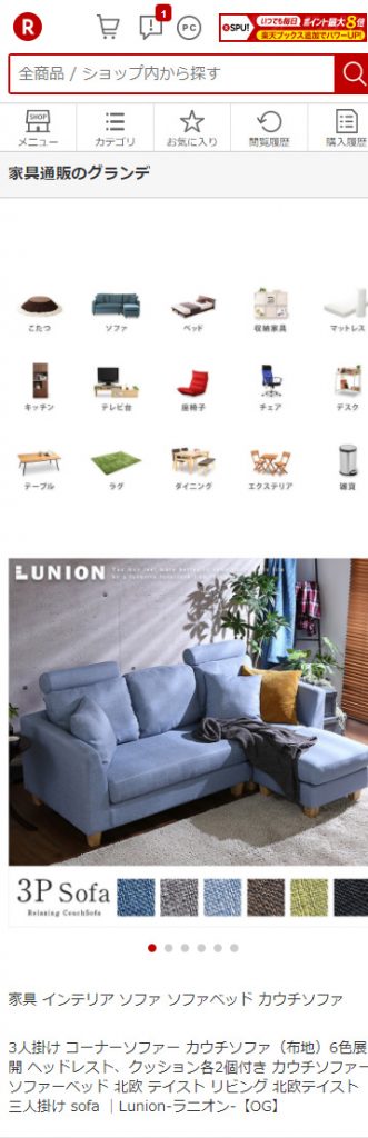 - セール中やポイントアップ中の商品など注目アイテムを並べることで回遊率向上