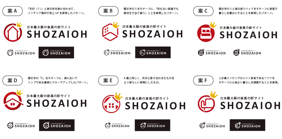 今までの利用者にも親しみをもってほしいということで、旧ロゴの輪郭とトレードマークの王冠は残して、何もない部屋と頭文字Sから形を作っていきました。何もない部屋=ひとり暮らしや転勤などで何も無い状態でもすべての家具が揃う、というメッセージ性を持たせています。