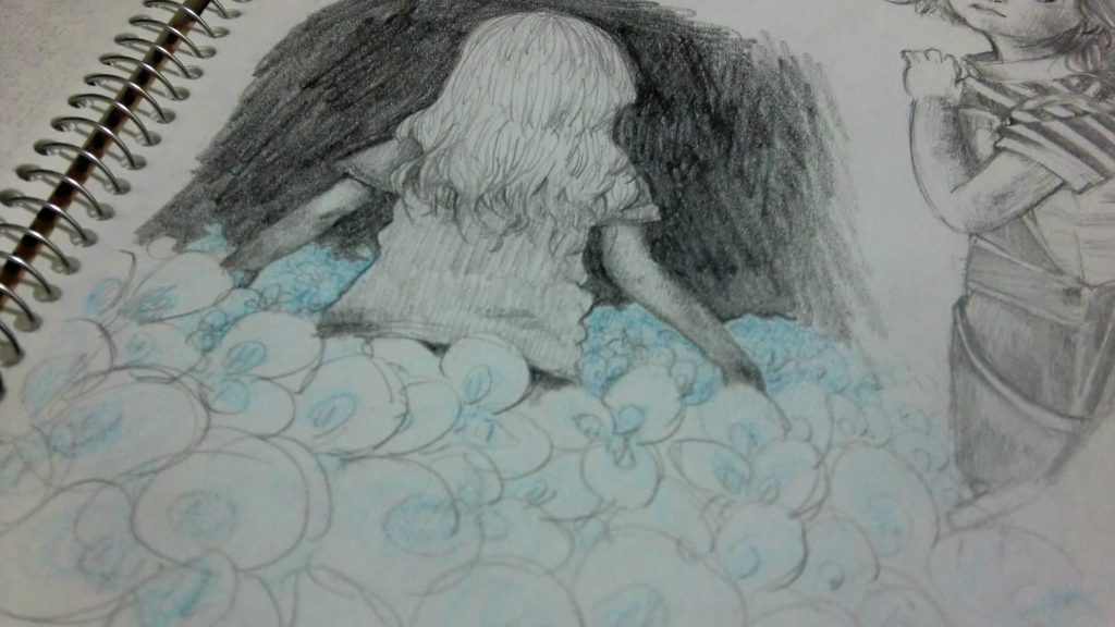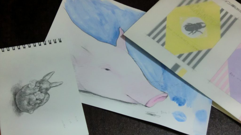 ロゴを用いた包装紙デザイン(色鉛筆)
